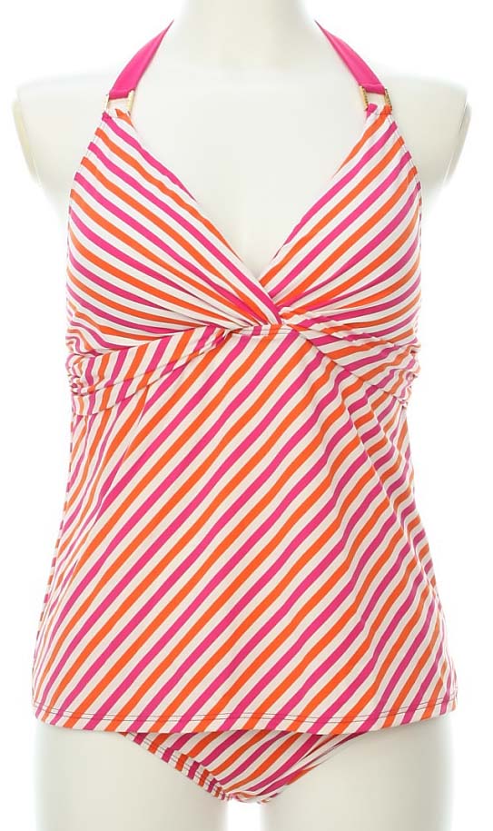 三食系のストライプが明るくスタイルよく見せてくれるタンキニビキニ。