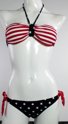 アメリカ国旗星条旗ビキニ!バンドゥ―トップ&タイサイドフルバックビキニ